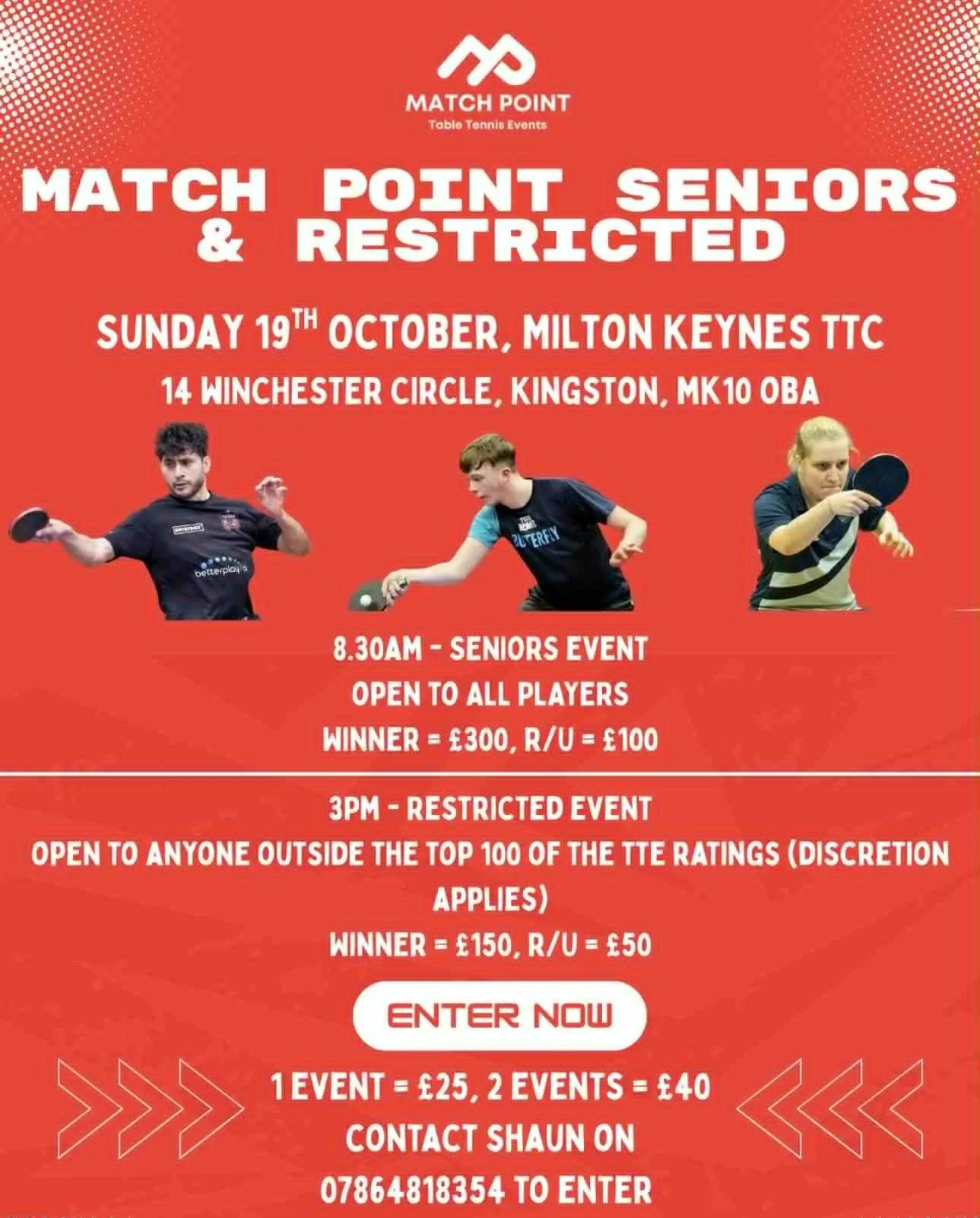 Venue: Milton Keynes TTC, 14 Winchester Circle, Kingston, MK10 OBA